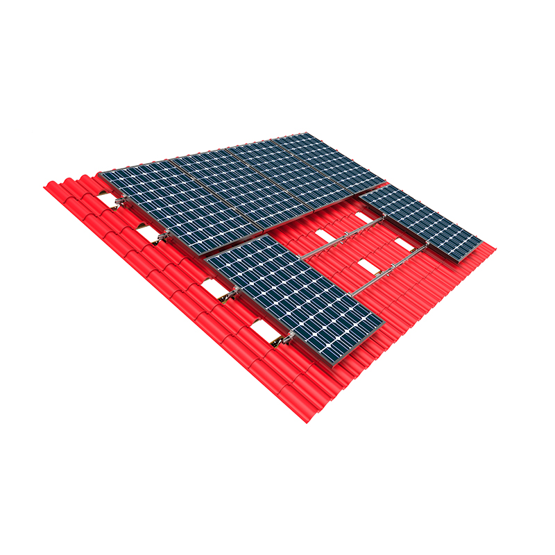 Untuk bumbung jubin, kurungan pengapit atau kurungan berwajaran biasanya digunakan. Kurungan ini melancarkan modul PV di atas bumbung dengan mengepung atau membatalkan tanpa perapian jubin. Sistem pendakap pengapit boleh mengelakkan merosakkan permukaan bumbung sambil memastikan kestabilan pendakap. Di samping itu, pemasangan bumbung jubin juga memerlukan perhatian untuk menyegel untuk mencegah penembusan kelembapan.