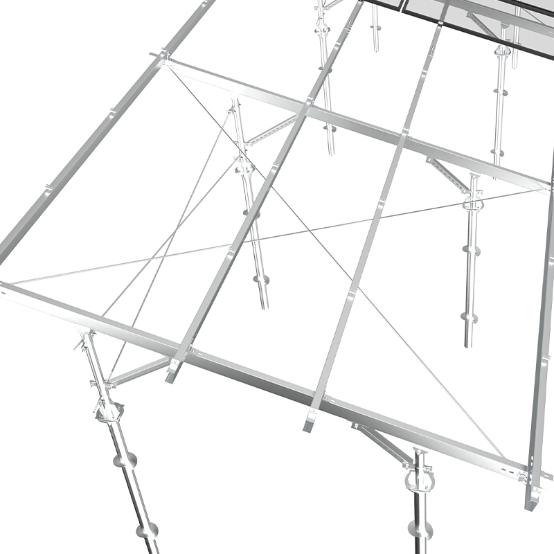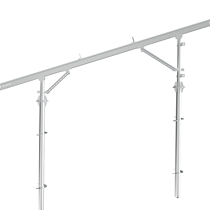 Pemasangan PV Hibrid Pertanian-solar adalah sistem sokongan yang direka untuk senario kolaboratif "penanaman pertanian penjanaan photovoltaic". Ia mengamalkan struktur tanah tinggi (biasanya 2.5-4 meter) untuk memastikan bahawa tanaman di bawah adalah terang dan jentera pertanian boleh lulus tanpa henti. Badan utama pendakap diperbuat daripada keluli tergalvani panas atau aloi aluminium, yang tahan kakisan dan mempunyai kapasiti beban yang kuat. Ia dipasang secara stabil melalui buasir pra-pengebumian atau asas longgokan lingkaran, dan sesuai untuk pelbagai medan seperti tanah ladang rata dan tanah yang cerah. Reka bentuk mengambil kira pengoptimuman sudut kecenderungan komponen dan baki transmisi cahaya. Sistem ini menyedari "satu tanah, dua kegunaan", yang bukan sahaja meningkatkan kadar penggunaan tanah yang komprehensif, tetapi juga membantu transformasi pertanian rendah karbon. Ia sesuai untuk projek bersepadu fotovoltaik pertanian seperti sayur-sayuran dan penanaman buah-buahan dan rumah hijau, dan mengambil kira pendapatan penjanaan kuasa dan pembangunan pertanian yang mampan.